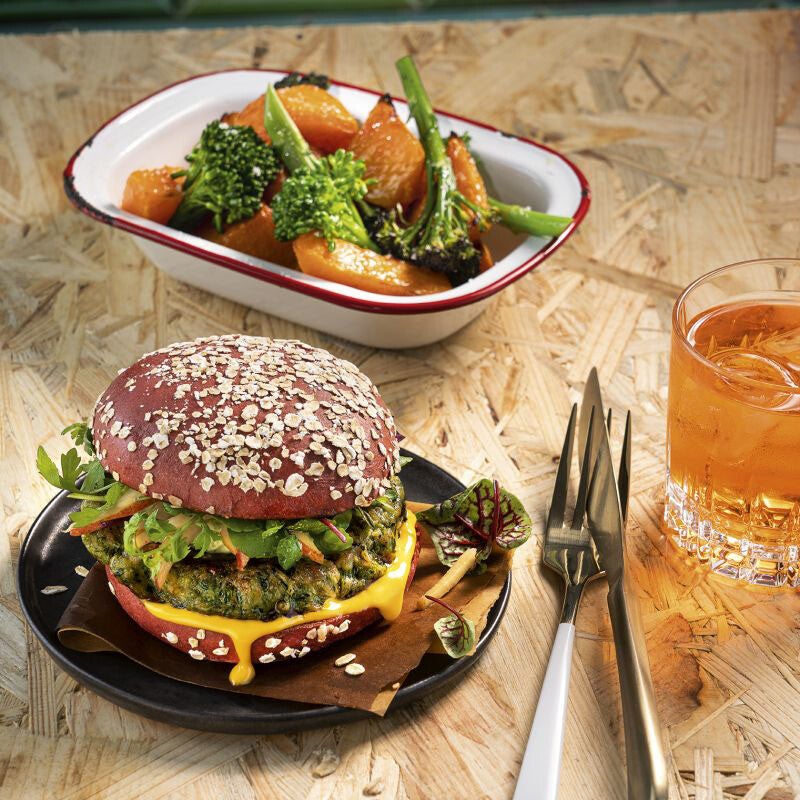 Im Herzen grün: Trendige Power-Gemüsesorten wie Grünkohl, Spinat und Brokkoli geben dem Patty einen appetitlichen Nature-Look. Kernige Haferflocken sorgen für Struktur und einen kraftvollen Biss.