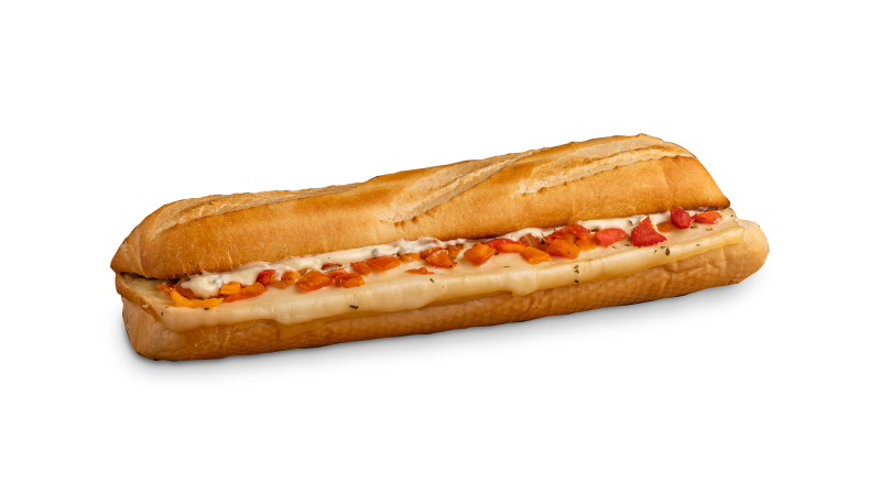 Baguette nach französischer Art mit Mozzarella, Tomaten, Kräutern & Spezial-Kräutersauce. Vorgebacken, tiefgefroren.