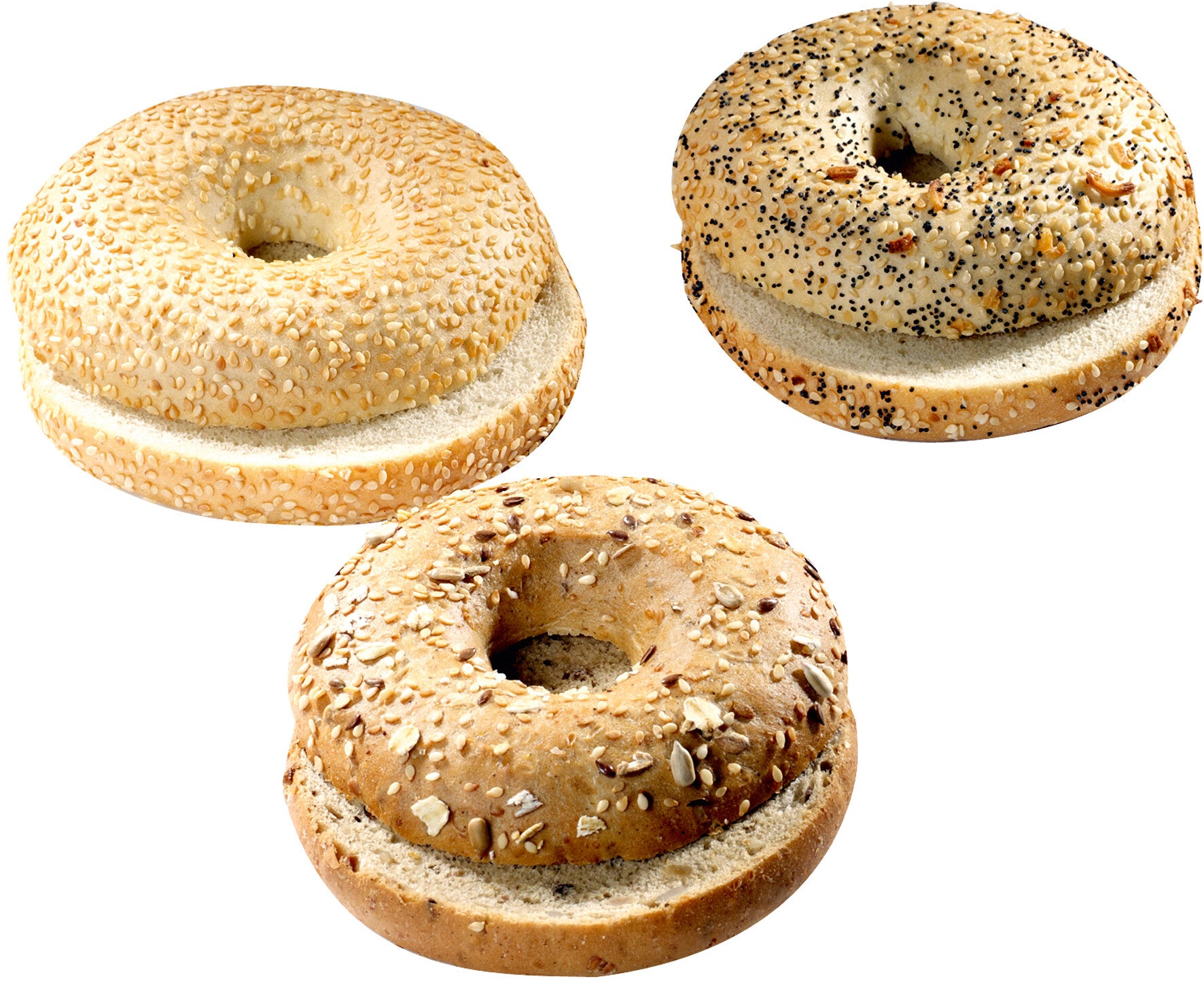 Bagel-Mischkarton bestehend aus jeweils 15 vorgeschnittenen Bagels der Sorten:
