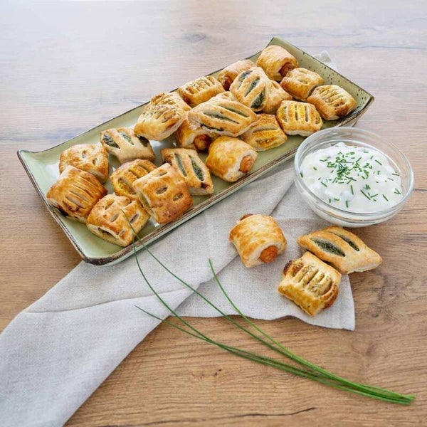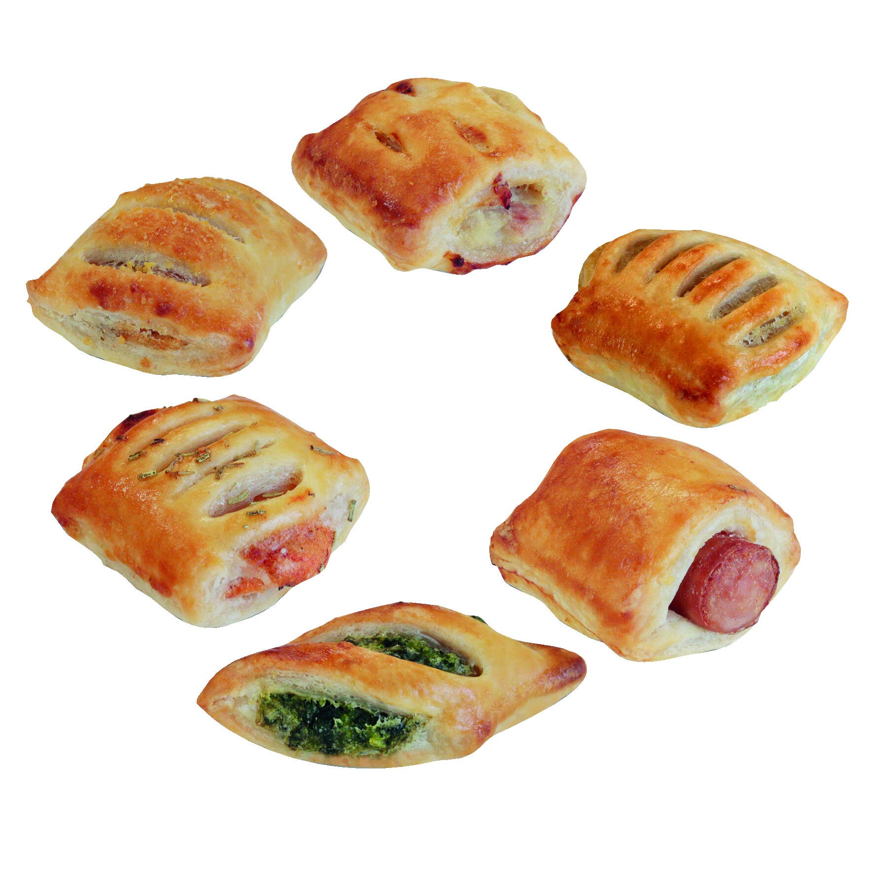 Mischkiste mit herzhaften Blätterteighäppchen in den sechs leckeren Sorten: