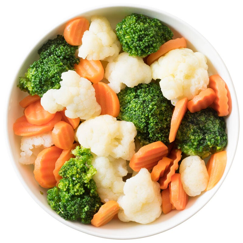 Zutaten: 35% Blumenkohl, 35% Karottenscheiben Wellenschnitt, 30% Brokkoli
