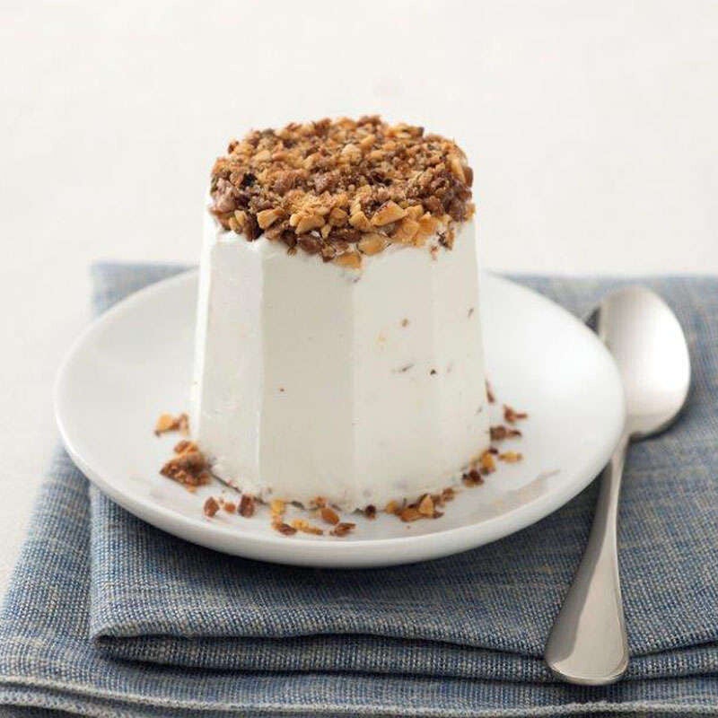 Zutaten: Wasser, REHYDRIERTE MAGERMILCH, Pflanzenöl(Kokos), Zucker, KARAMELLISIERTE HASELNUSSSTÜCKCHEN(8,6%)(HASELNÜSSE, Zucker, Aromen(MILCH)), Pflanzenfett (Palme), Nougatgranulat(4%)(Glukosesirup, Zucker, HASELNÜSSE, Honig, Eiweiß, Aromen), REHYDRIERTES EIWEISS , Glukose-Fruktose-Sirup, Glukosesirup, Stabilisator Sorbitsirup, Alkohol, PASTEURISIERTE MILCH, Weißwein, EIGELB, Emulgatoren Mono- und Diglyceride von Speisefettsäuren, Mono- und Diacetylweinsäureester von Mono- und Diglyceriden von Speisefettsäuren und Lecithin(Sonnenblumen),modifizierte Stärke, MILCHEIWEISS, Verdickungsmittel amidiertes Pektin, Natriumalginat und Xanthan, LAKTOSE, Glukose, Marsalawein, Aromen(MILCH).